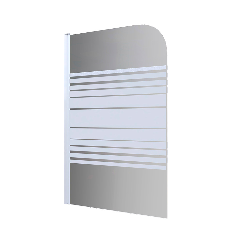 Biombo de ducha serigrafiado de una hoja. El acabado es en aluminio