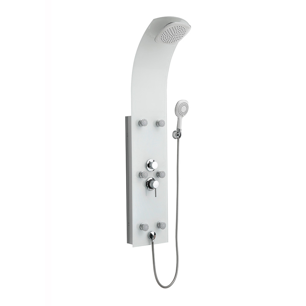 Hydromassage column with a modern and simple design. With an excellent quality Crystal finish. It has 6 sprinklers plus the mobile upper one.