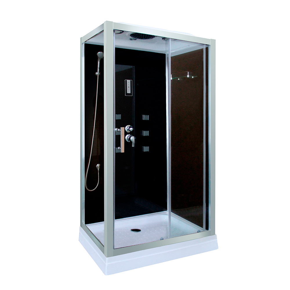 Cabina hidromasaje en color Negro y acabado en cristal. Dispone de 6
