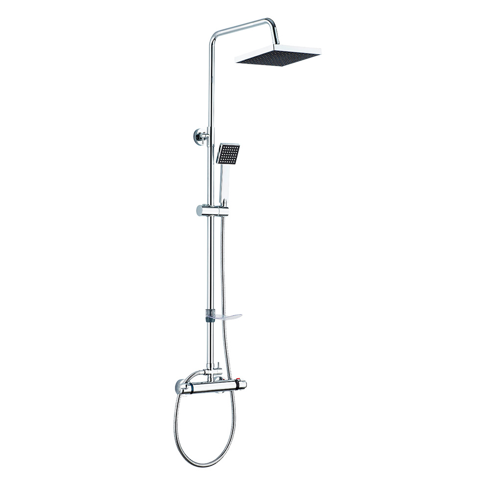 Conjunto de chuveiro sénior superior com pulverizador quadrado. Tem um toque
